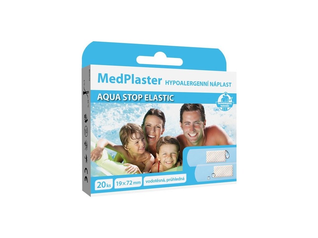 MedPlaster Náplast AQUA stop elastic je vodotěsná náplast s polštářkem.